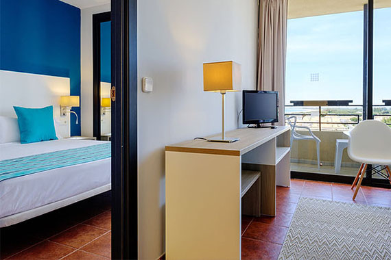 3 people max + cot: Decorated with modern furniture and equipped with satellite TV (flat screen), fridge, safe, kitchenette, telephone, Wi-Fi connection, bathroom with bathtub and balcony with sea or city view.